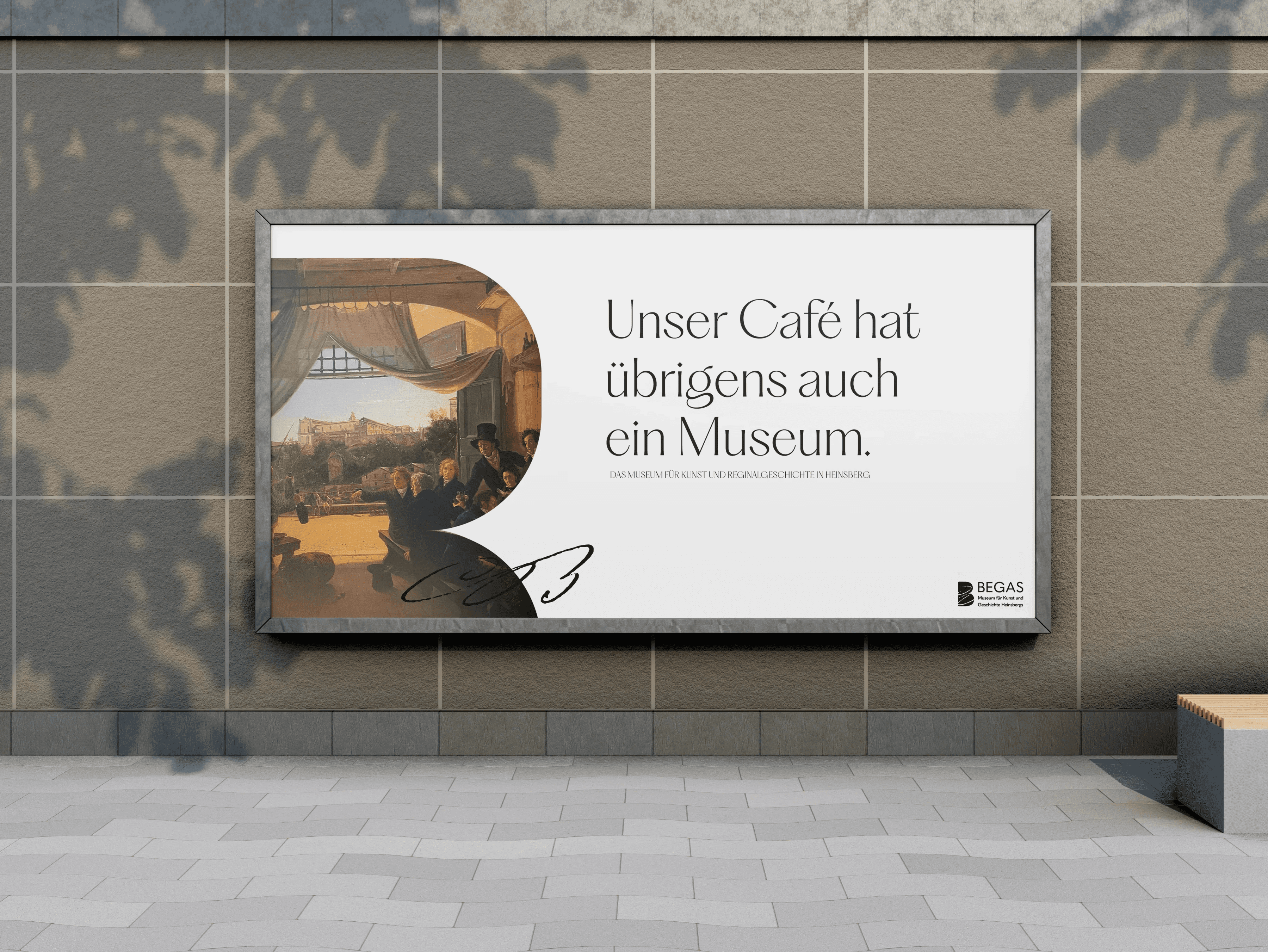 Begas was repositioned through a rebrand that combines a modern visual system with a humorous, approachable tone of voice. The concept aimed to speak to people at eye level and make the museum feel relevant and inviting, without losing the connection to the Begas family history and the institution’s cultural heritage. A campaign framework and refreshed touchpoints created a coherent experience across entry points, including clearer event communication and a stronger newsletter as a recurring channel.